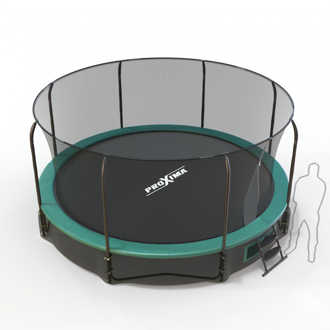 - Батут Proxima Premium оборудован удобной лестницей из двух ступеней, которая позволит с легкостью на него забраться даже маленьким прыгунам.