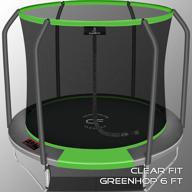 В 2026 году представлена обновленная линейка с улучшенной конструкцией каркаса. Усиление достигнуто за счет использования прочных Т-образных кронштейнов из металла толщиной 1.9 мм. Кроме того, в комплектацию добавлен карман для обуви. Каркасный батут с защитной сеткой Clear Fit серии GreenHop — отличаются комфортом и надежностью. Надежная рама из качественных комплектующих, прочная защитная сеть снабжена прямым креплением к прыжковому полотну и дополнительной защитой входа, наверху каркасное жесткое крепление, сеть не провисает и не слетает во время тренировок. Увлекательный, полезный и безопасный тренажер для всей семьи. Батуты серии GreenHop 6Ft и 8Ft поставляются в оптимальной для комфорта и безопасности комплектации: батут, верхняя защитная сеть, защитный мат и карман для обуви. Размер батута 6 футов с прыжковой поверхностью 1.42 м и его легко разместить на небольшом участке, он подойдет для детских игр и для тренировок. Верхняя защитная сеть оберегает от падений, усиленная молния и дополнительная защита входа уберегут малышей от случайного входа или падения. Надежный каркас из гальванизированной стали, качественные комплектующие и погодостойкие метизы рамы делают батут безопасным, устойчивым, надежным, гарантируют полную защиту от коррозии и долгий срок службы. Максимальный вес пользователя батута GreenHop 6Ft — до 130 кг.