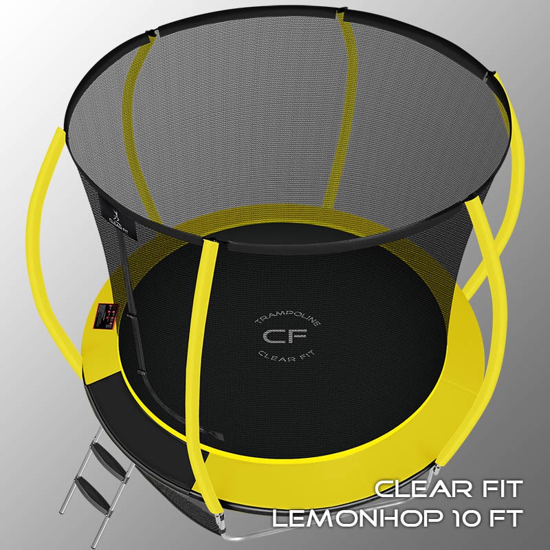 В 2026 году представлена обновленная линейка с улучшенной конструкцией каркаса. Усиление достигнуто за счет использования прочных Т-образных кронштейнов из металла толщиной 1.9 мм. Кроме того, в комплектацию добавлен карман для обуви. Каркасный батут с защитной сеткой Clear Fit серии LemonHop — отличаются комфортом и надежностью. Надежная рама из качественных комплектующих, прочная защитная сеть снабжена прямым креплением к прыжковому полотну и дополнительной защитой входа, наверху каркасное жесткое крепление, сеть не провисает и не слетает во время тренировок. Увлекательный, полезный и безопасный тренажер для всей семьи. Батуты серии LemonHop 10Ft, 12Ft, 14Ft и 16Ft поставляются в оптимальной для комфорта и безопасности комплектации: батут, верхняя защитная сеть, защитный мат, лестница и карман для обуви. Благодаря размеру батута в 10 футов и диаметру прыжковой поверхности 2.62 м он идеально подходит для дачного участка, размеры полотна позволяют комфортно тренироваться взрослым и развлекаться детям любого возраста. Верхняя защитная сеть оберегает от падений, усиленная молния и дополнительная защита входа уберегут малышей от случайного входа или падения. Надежный каркас из оцинкованной стали, качественные комплектующие и погодостойкие гальванизированные метизы рамы делают батут безопасным, устойчивым, надежным, гарантируют полную защиту от коррозии и долгий срок службы. Максимальный вес пользователя батута LemonHop 10Ft — до 170 кг.