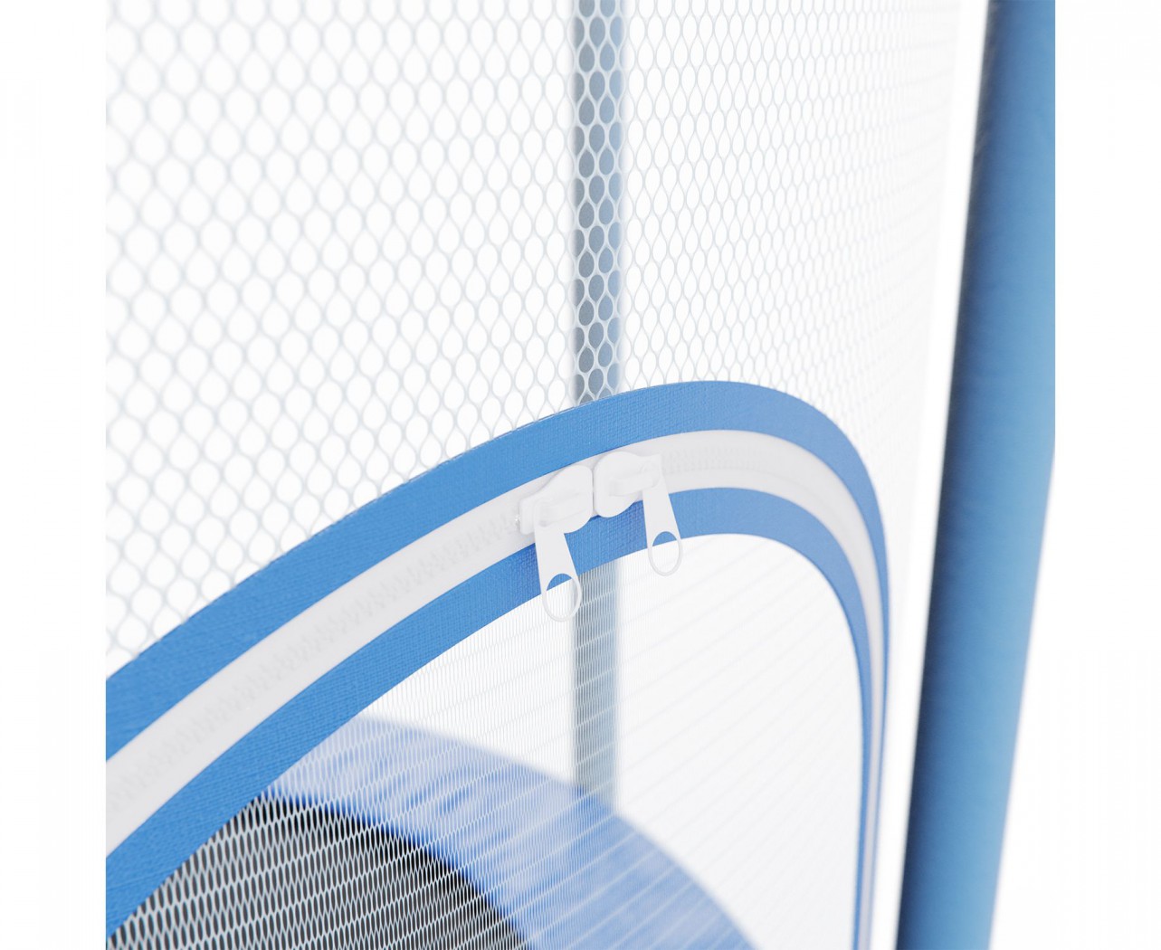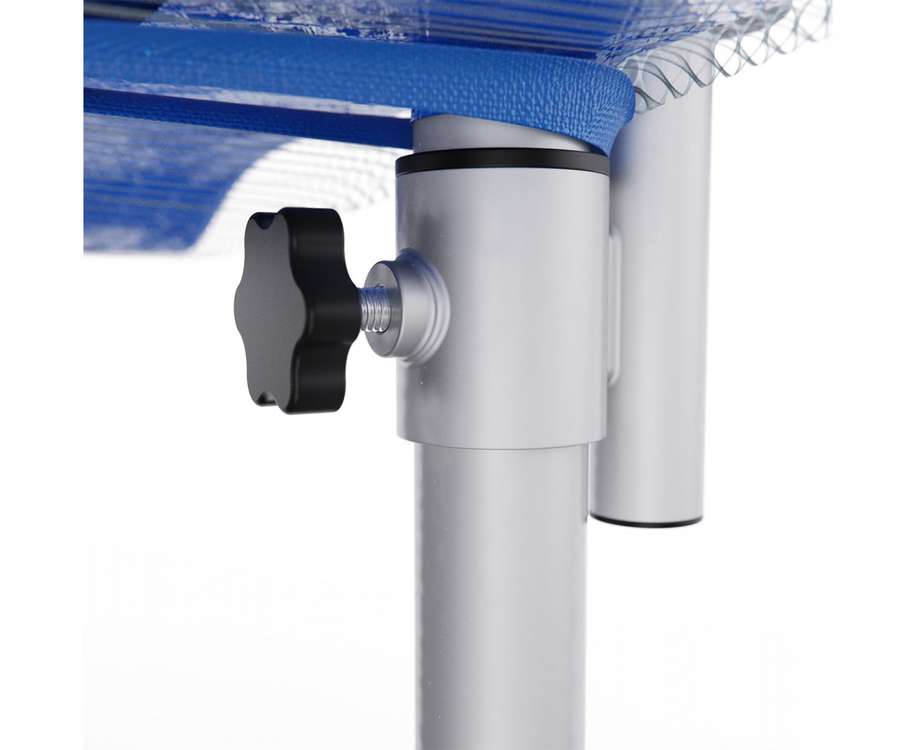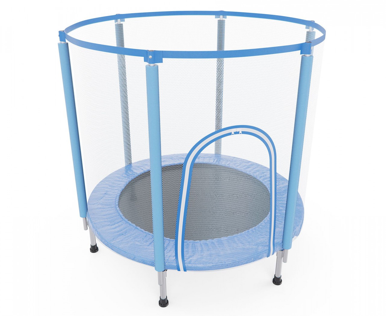 Рама и ножки выполнены из надёжной стальной трубы Ø25 мм с толщиной стенки 1,4 мм. Батут оснащён 6 ножками, которые равномерно распределяют нагрузку и обеспечивают устойчивость при прыжках. Мягкий защитный мат из ПВХ закрывает пружины и раму, предотвращая случайные удары и повышая комфорт во время занятий.