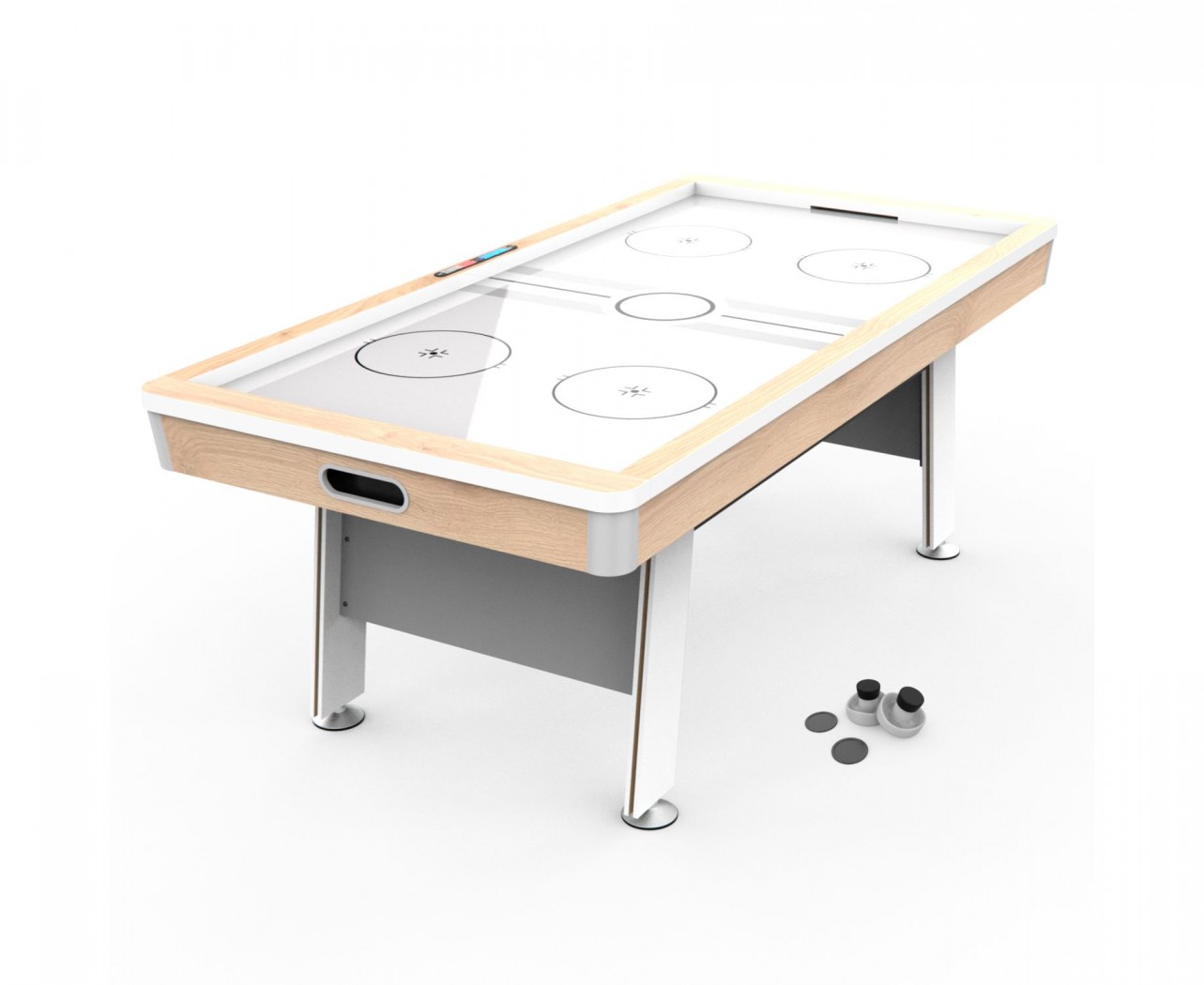 Игровой стол - отличная покупка не только для себя, но и прекрасный подарок на праздник. Игра в аэрохоккей эмоциональная, захватывающая и проходит на высоких скоростях. Почувствуйте звуки и атмосферу увлекательной и популярной игры! Игровой стол - аэрохоккей DFC DAISY AT-300 размером 84 дюйма - лучший выбор для большой семьи или компании. Отделка цвета белёный дуб и дизайн в стиле хай-тек лаконично впишут игровой стол в интерьер вашего дома. Отличительной чертой этого стола является не только отделка, но и электронный счётчик очков с подсветкой. Его необычная форма дополняет общий концепт современного дизайна аэрохоккея DAISY. Размер стола: 213,5 x 106,7 x 81,3 см. В комплект входят 2 биты и 2 шайбы, электронный счётчик очков и блок питания, работающий от батареек типа АА (не входят в комплект). Ножки стола можно отрегулировать по высоте, если необходимо компенсировать неровность пола. Вентилятор работает от сети 220 вольт.Габариты Размер стола: 213,5 x 106,7 x 81,3 см Размер игрового поля: 92,5 х 193 см Размер упаковки: 220 х 133 х 16,2 см Вес упаковки: 58 кг Вес нетто: 53 кг Производство Гарантия : 12 месяцев Бренд: DFC Страна производства: Китай Технические характеристики Сечение ножек: 6 х 1,3 см Размер в футах: 7' Высота бортиков от игрового поля: 3 см Толщина бортиков игрового поля: 7,5 см Высота ножек: 73 см Диаметр бит: 9,6 см Диаметр шайб: 6,5 см
