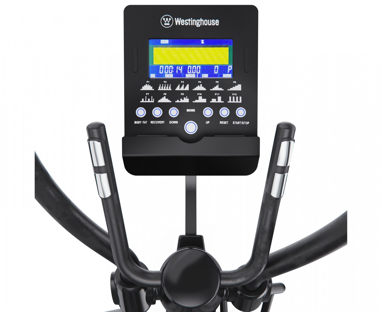 Все данные отображаются на LCD-дисплее, где вы можете отслеживать ключевые параметры: время, дистанция, калории, пульс, мощность, скорость и темп. Для удобного отслеживания за состоянием организма во время тренировки на поручнях установлены сенсорные датчики пульса. Так же в дисплей встроено 12 программ + ручной, целевой, пользовательский режим, восстановления пульса и оценка ИМТ.