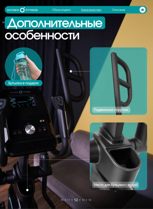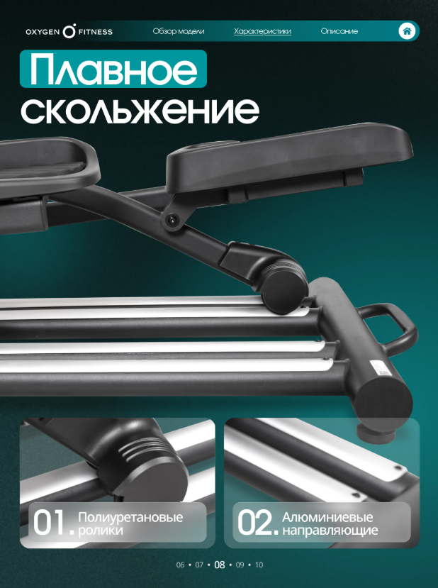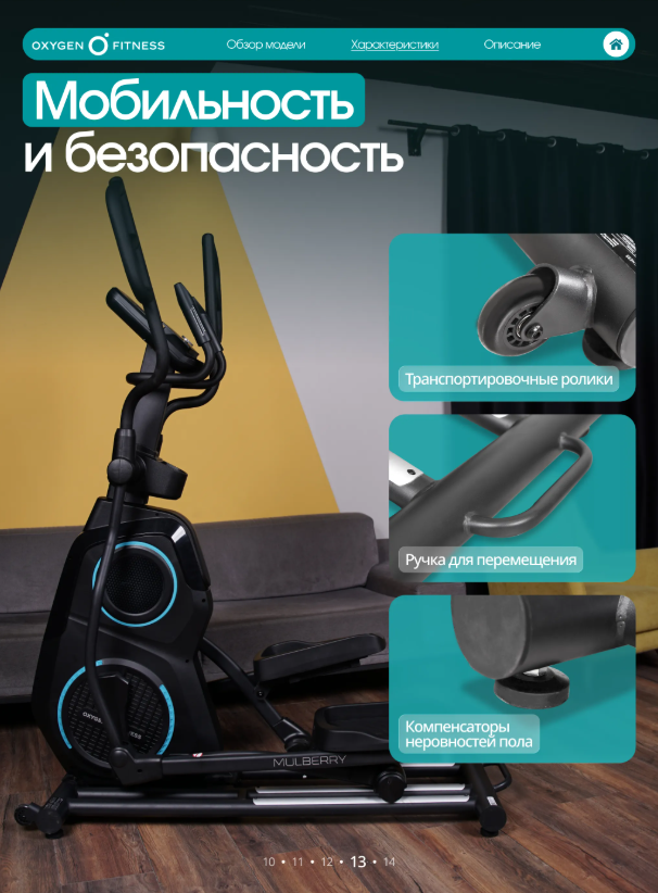 OXYGEN FITNESS MULBERRY — функциональный эллиптический тренажёр для домашних тренировок, созданный для пользователей, которым важны длинный шаг, точная электронная регулировка нагрузки и современные цифровые возможности. Модель ориентирована на регулярные кардиотренировки, работу над выносливостью и контролируемые занятия по пульсу, сочетая комфорт движения с интерактивными тренировочными форматами. Тренажёр построен на высокопрочной раме с антикоррозийной обработкой и двухслойной покраской, что обеспечивает устойчивость, надёжность и длительный срок службы. Ключевые параметры движения: • Длина шага 530 мм — близкая к естественной беговой траектории, подходит пользователям разного роста. • Минимальное расстояние между педалями — 62 мм, что снижает нагрузку на коленные и тазобедренные суставы. • Трёхкомпонентный шатун — повышенная прочность и стабильность педального узла. • Инерционный вес маховика 8 кг обеспечивает плавный и равномерный ход без рывков. Увеличенные антискользящие педали гарантируют надёжную фиксацию стопы даже при интенсивной работе, а двухпозиционные нескользящие рукоятки позволяют задействовать мышцы верхней части тела. OXYGEN FITNESS MULBERRY оснащён электромагнитной системой нагружения с 16 уровнями сопротивления, регулируемыми электронно. Такая система обеспечивает точную настройку интенсивности и плавное изменение нагрузки во время тренировки. Цветная LED-консоль отображает расширенный набор параметров: • время, скорость, дистанцию, • калории, пульс, • программу, Ватты, • жироанализатор, • количество шагов. Программный пакет включает 22 режима тренировок: • быстрый старт и ручной режим, • 10 предустановленных программ, • 4 пульсозависимые программы, • 4 пользовательские программы, • режим работы по Ваттам, • жироанализатор. Для более точного контроля пульса предусмотрена возможность подключения Bluetooth-кардиодатчика (приобретается отдельно). Тренажёр поддерживает Bluetooth-подключение к популярным приложениям Kinomap™ и Zwift™ с интерактивным уровнем интеграции, что делает тренировки более вовлекающими и разнообразными. Интерфейс доступен на русском и английском языках. Для удобства пользователя предусмотрены: • подставка под планшет или смартфон, • подставка для бутылки, • удлинённый сетевой шнур 4 м, • транспортировочные ролики и компенсаторы неровностей пола. OXYGEN FITNESS MULBERRY — сбалансированный эллиптический тренажёр для дома, сочетающий продуманную биомеханику, современные технологии и комфорт, необходимый для регулярных и эффективных кардиотренировок.