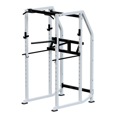 Тренажер оснащен 15 положениями для установки страховочных упоров и ловушек, что позволяет точно настраивать высоту под рост пользователя и выбранное упражнение. Порошковое термоотверждаемое покрытие защищает металлические элементы от коррозии и механических повреждений.