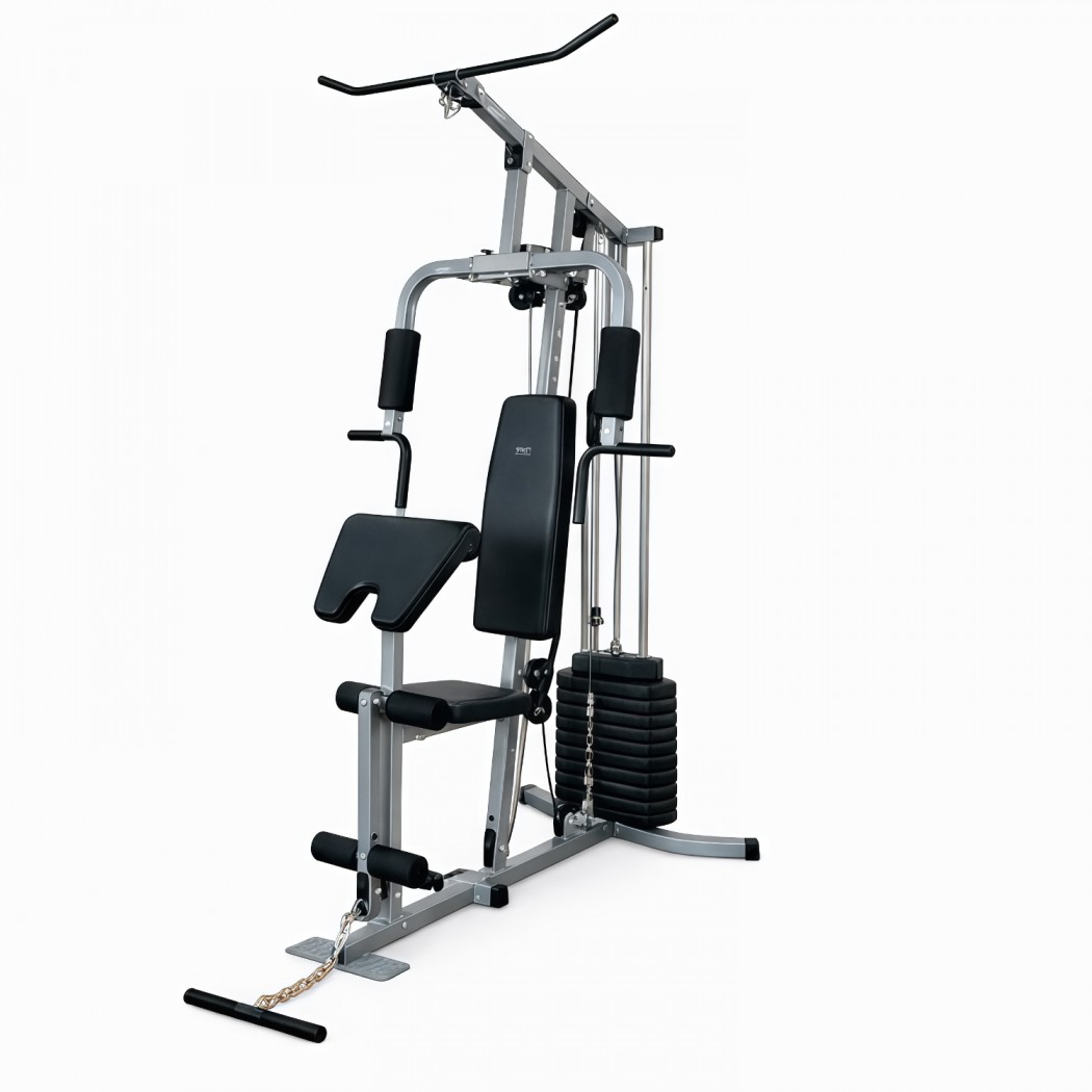 В конструкции предусмотрено 9 свободных блоков и 1 встроенный весовой блок весом 46 кг. Такая система позволяет гибко настраивать нагрузку под уровень подготовки пользователя — от начинающего до уверенного спортсмена. Силовой комплекс удобно использовать как для набора мышечной массы, так и для поддержания формы.