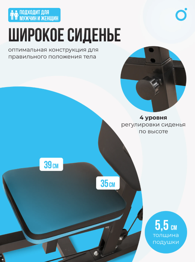 Комплектация: канат для трицепса, рукоятка для тяги сверху, манжета для ноги, прямая рукоятка. неопреновые валики - 4 для ног (ф 8.5), 2 - для рук (ф 9). Размеры подушек: парта бицепса – 30*40*5 (7) см. спинка – 32*60*5.5 см сиденье – 39*35*5.5 см. 4 уровня регулировки сиденья по высоте. |