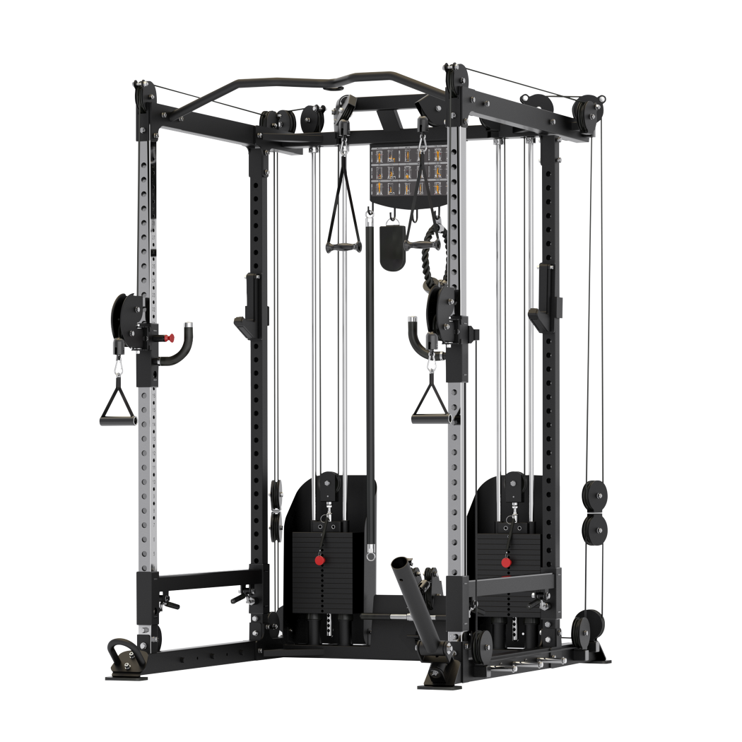 Многофункциональный тренажер, на котором можно выполнять более 100 упражнений, включая тяги, жимы, приседы, подтягивания и другие базовые элементы современной тренировки.