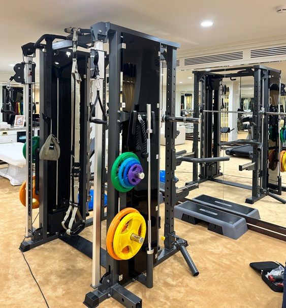 FTX-8509 предназначен для полноценной силовой и функциональной тренировки. Машина Смита позволяет безопасно выполнять жимы и приседания, полурама и кроссовер — базовые упражнения со свободным весом, а турник и брусья — развивать мышцы корпуса, рук и плеч.