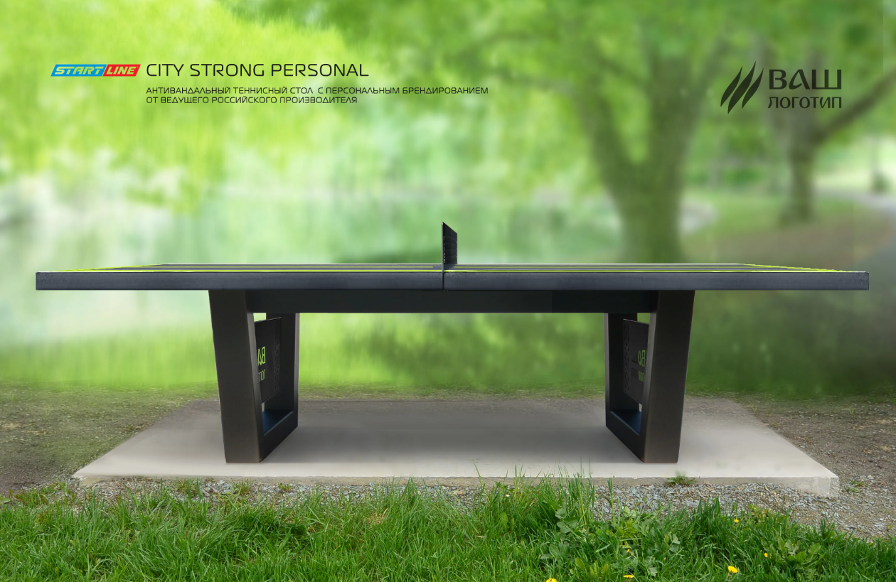 Модель City Strong Personal открывает уникальную возможность персонализации теннисного стола. Логотип, семейный герб или памятная надпись украсят металлическую решетку в основании и стеку City Strong Personal, подчеркнув эксклюзивность стола.