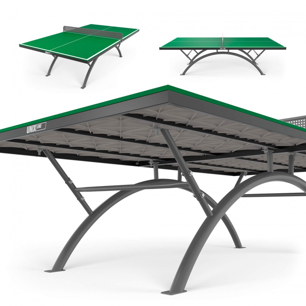 Основой металлической рамы уличного всепогодного теннисного стола UNIX Line являются опоры из стальной трубы Ø60 и толщиной 1,4 мм. Благодаря таким характеристикам конструкции теннисный стол сохраняет жесткость и устойчивость на любых покрытиях.