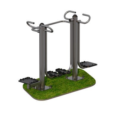 Тренажер предназначен как для одного пользователя, так и для двух(трех) одновременно. Встаете на педали и держитесь за рукоятки. Зафиксировав верхнюю часть корпуса выполняйте раскачивающие движения в разные стороны. Развиваются мышцы бедер и мышцы живота. Взявшись за перекладину встаете на педали и совершаете шаговые движения ногами. Развиваются внутренние мышцы ног и суставы. Примите положение стоя. Держась за рукоятки, совершайте поворотные движения туловища в разные стороны, при этом торс остается неподвижным. Развиваются прямые и косые мышцы живота, мышцы спины получают дозированную нагрузку, приводятся в тонус мышцы талии.Длина – 2007 мм; Ширина – 703 мм; Высота – 1366 мм; Допустимая нагрузка – до 150кг на одно рабочее место; Опорные стойки из трубы диаметром 108мм, толщина стенки 4мм, имеют сферическую пластиковую заглушку; Ногоступы из морозоустойчивого пластика, усиленные ребрами жесткости и предназначены для использования на открытом воздухе; Рукоятки из стальной трубы диаметром 33,5мм; Узлы вращения на подшипниках закрытого типа; Тренажер крепится на закладной элемент, который монтируется на глубину 500 мм и представляет собой платформу из листа с армирующей обвязкой. Размеры закладного элемента 300х300мм с межцентровым расстоянием шпилек 240 мм, высота шпильки 30 мм над уровнем закладного, диаметр шпильки 16 мм. Гайки утапливаются в антивандальное гнездо тренажера, оснащенное заглушкой от выкручивания; Травмобезопасная, антивандальная конструкция; Порошковая термоотверждаемая краска устойчивая к атмосферному воздействию; Торцы рамы, рычагов и метизы запаяны, либо закрыты декоративными заглушками.