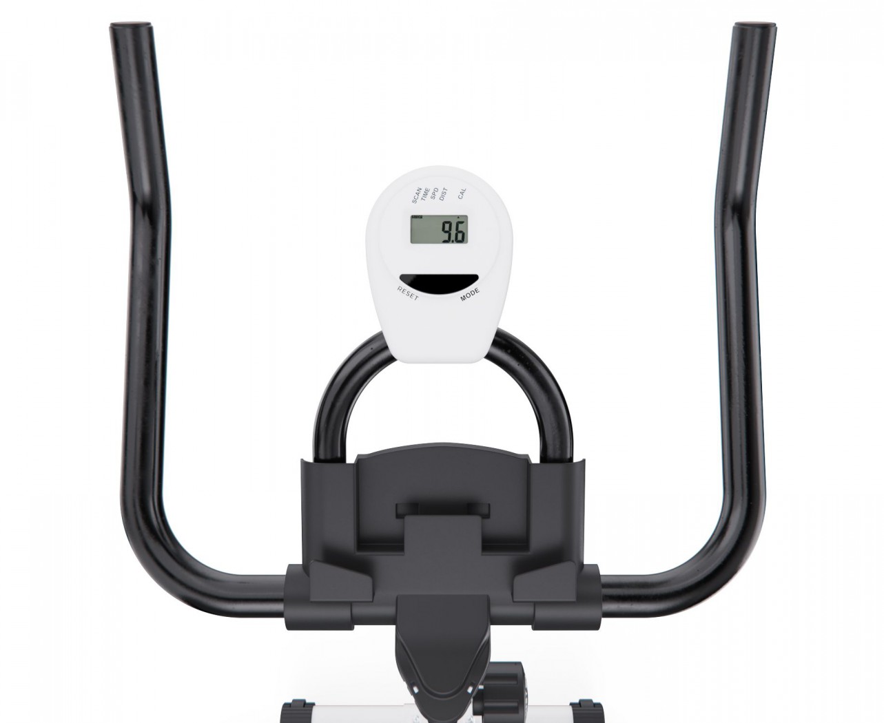 LCD-дисплей выводит всю необходимую информацию: время тренировки, скорость, пройденную дистанцию, количество сожжённых калорий и режим сканирования. Это позволяет отслеживать прогресс и корректировать нагрузку в реальном времени. Для работы консоли требуется 2 ААА батарейки (не входят в комплект).